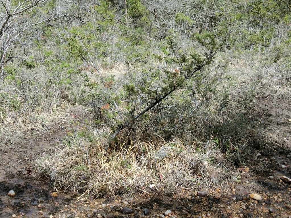 ネズミサシの樹形(幹が直立せず倒伏するタイプ)