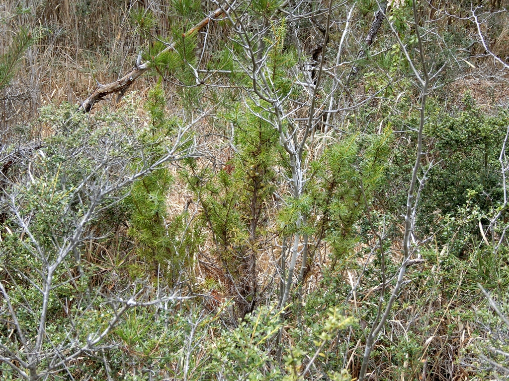 斜立するネズミサシの枝ぶり